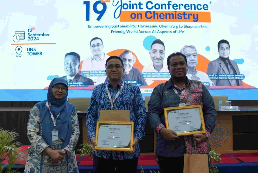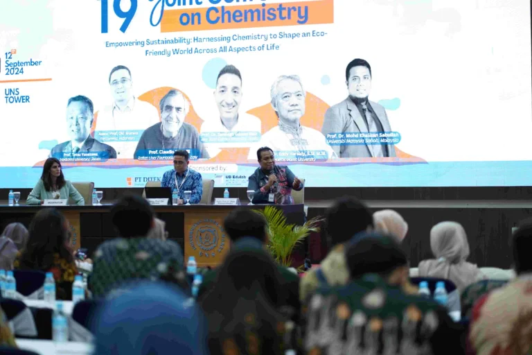 FMIPA UNS – Fakultas Matematika dan Ilmu Pengetahuan Alam (FMIPA) Universitas Sebelas Maret (UNS) Surakarta menjadi tuan rumah Joint Conference on Chemistry (JCC) ke-19. JCC merupakan konferensi tahunan yang diselenggarakan oleh konsorsium Jurusan Kimia tujuh Universitas di Jawa Tengah yang teridiri dari UNS, Universitas Diponegoro (UNDIP) Semarang, Universitas Negeri Semarang (UNNES), Universitas Jenderal Soedirman (UNSOED) Purwokerto, Universitas Kristen Satya Wacana (UKSW) Salatiga, Universitas Muhammadiyah Semarang (UNIMUS) dan Universitas Islam Negeri (UIN) Walisongo Semarang. Kegiatan JCC dilaksanakan pada hari Kamis (12/9/2024) di UNS Tower Surakarta