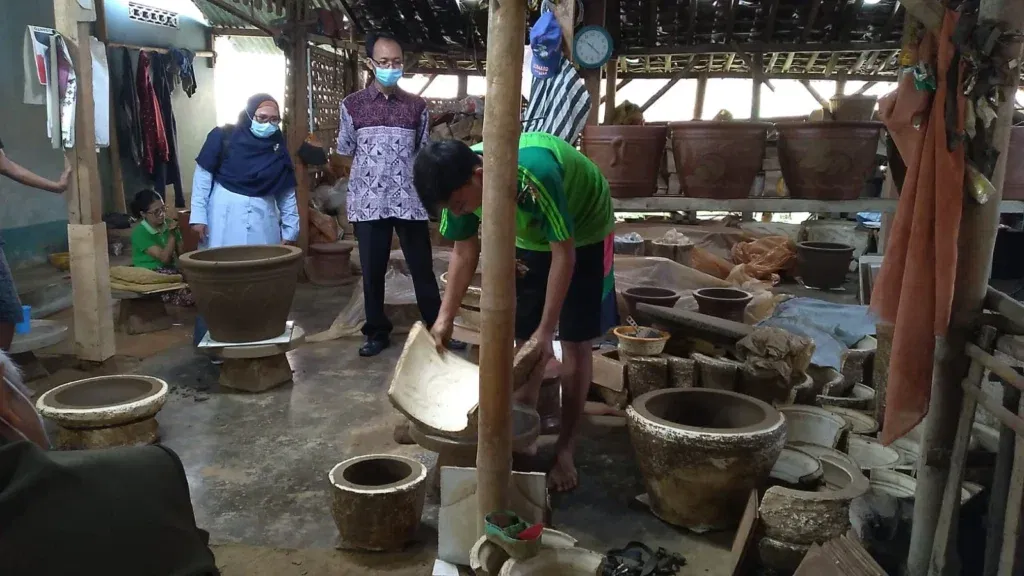 UNS – Tim pengabdian Riset Grup RG Material Anorganik Fakultas Matematika dan Ilmu Pengetahuan Alam (FMIPA) Universitas Sebelas Maret (UNS) menggelar pelatihan di sentra Gerabah PagerJurang – Bayat, di Kecamatan Bayat, Kabupaten Klaten, Propinsi Jawa Tengah, tepatnya di rumah produksi ”MAS HARI” di RT 01/RW 12. Pelatihan ini digelar pada Kamis (10/6/2021) dihadiri oleh 6 orang dosen serta peserta dari perusahaan mitra sebanyak 7 orang.